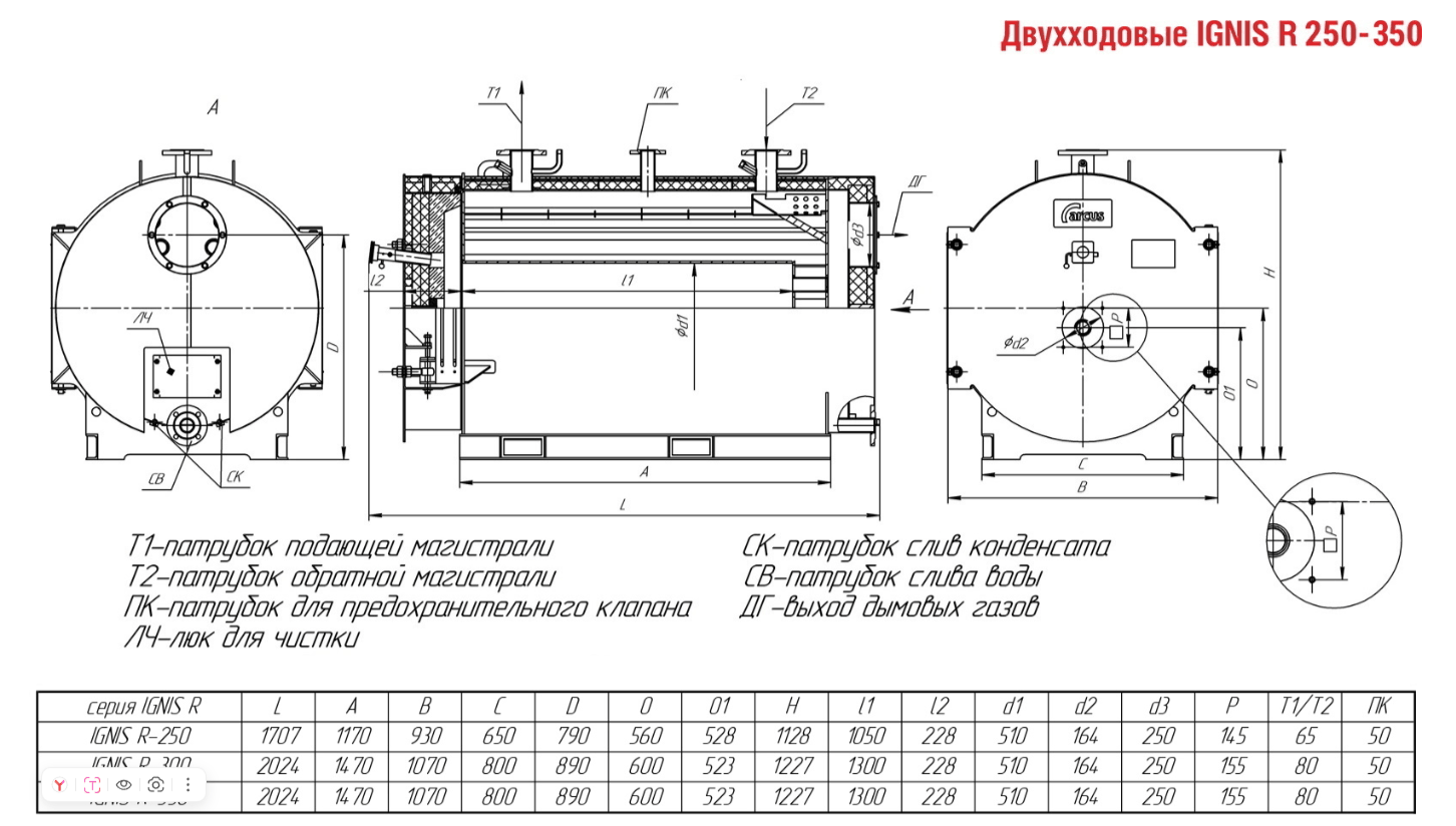 Технические характеристики водогрейного двухходового котла ARCUS IGNIS R-250